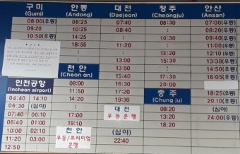 여기까지 서울에서 삼척가는 버스 시간표 정보 였습니다.