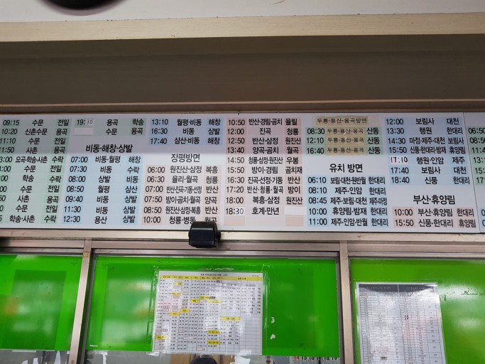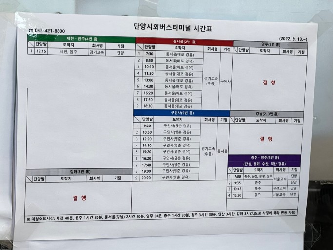 위 목적지는 현 시점 운행되고 있는 노선 현황이며 각 도착지 별 시간표는 아래 바로가기를 통해 이동 후 확인 하실 수 있습니다.