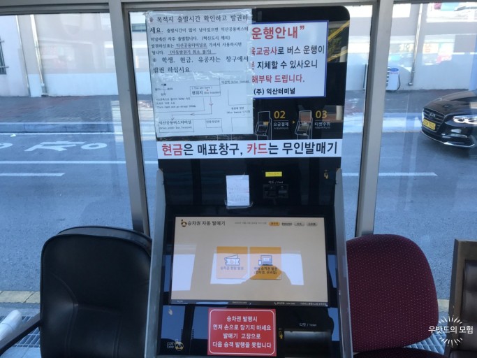 시외버스터미널에서 직접 승차권을 구매하는 방법도 있습니다. 아래 절차에 따라 터미널에서 승차권을 예매하세요.