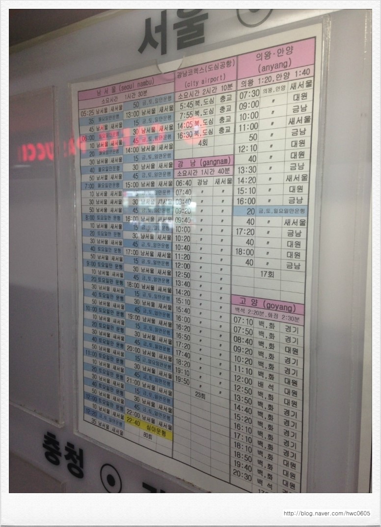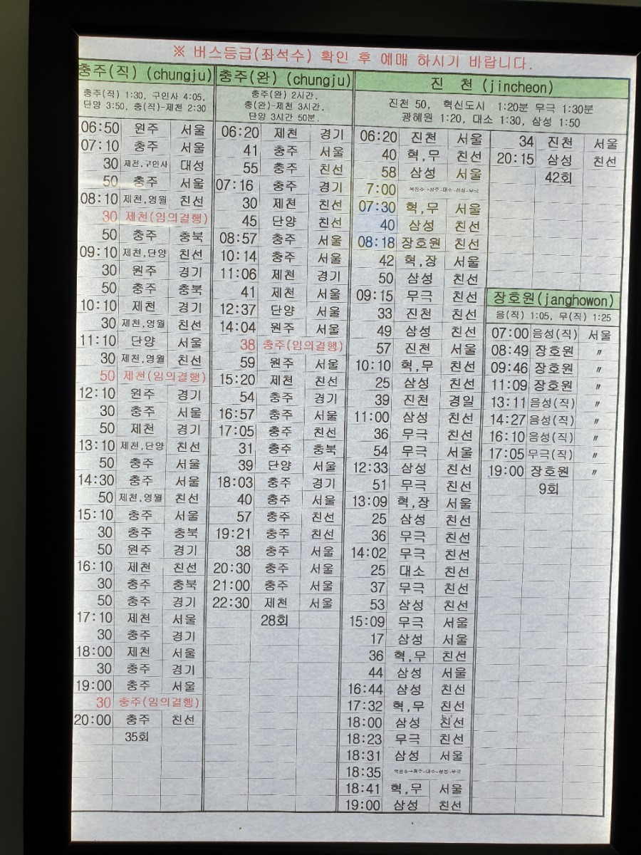 청주 시외버스터미널 버스시간표