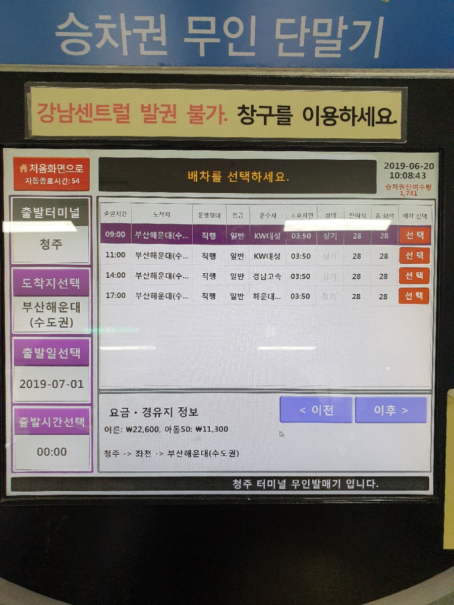 청주시외버스터미널 승차권 예매 절차