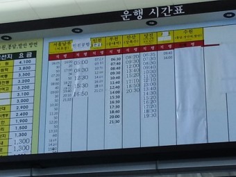 위 목적지는 현 시점 운행되고 있는 노선 현황이며 각 도착지 별 시간표는 아래 바로가기를 통해 이동 후 확인 하실 수 있습니다.