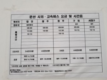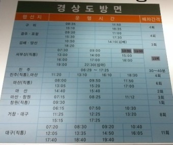 여기까지 구미에서 광주가는 버스 시간표 정보 였습니다.