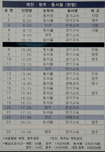 - 운행 시간표와 요금은 변동될 수 있으므로, 출발 전 공식 웹사이트나 고객센터를 통해 최신 정보를 확인하시기 바랍니다.